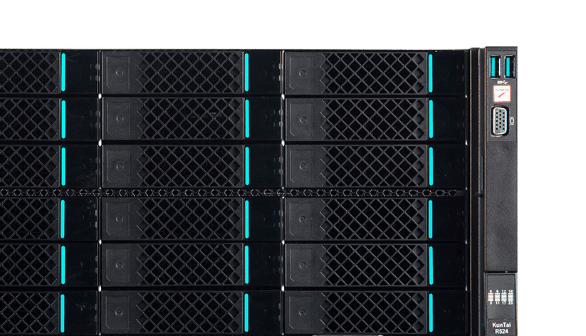 KunTai R524 存储型服务器是美狮贵宾会数码基于鲲鹏处理器推出的新一代 ARM数据中心服务器。主要面向存储业务,具有海量存储、高性能、低功耗以及易扩展的特点,适合为大数据分析、软件定义存 储等应用场景的工作负载进行髙效加速。